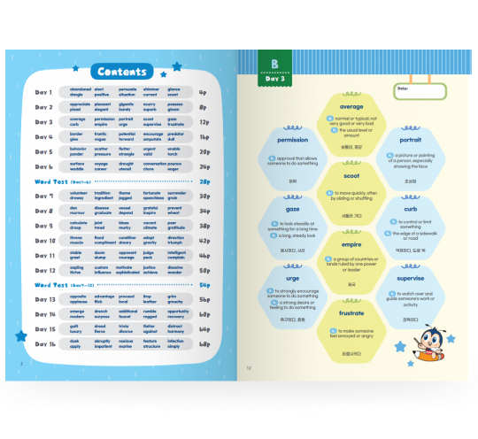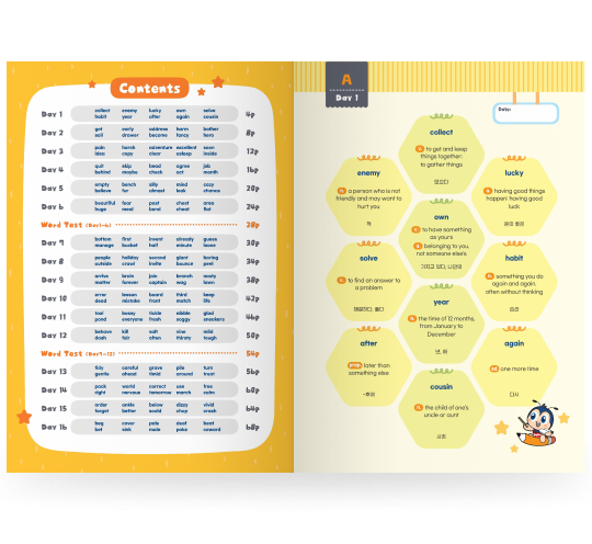 Definition/Meaning 파트 구성으로 2단계 반복 학습